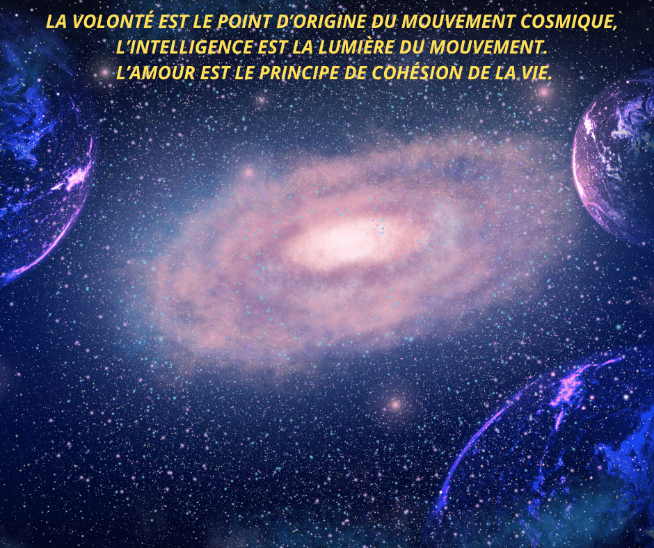 | La Volonté propulse, l’Intelligence éclaire, l’Amour relie et . Trois courants, un seul Feu. Trois mouvements, une seule Loi. Quand ces trois principes sont unifiés dans la conscience, l’homme cesse d’être un être de réaction : il devient un être de direction. Le Double peut alors agir librement dans la matière, et le Verbe se fait acte. |