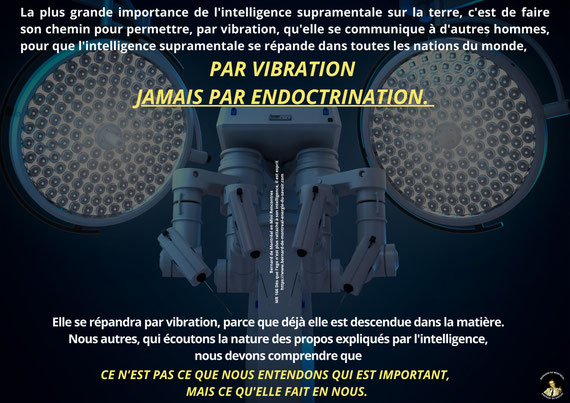 Chacun trouvera chaussure à son pied, tous ont leur place car le monde ne basculera jamais d’un seul coup dans l’intelligence "réelle". Le passage dans l'éther se faisant par glissement de générations en générations, via la compréhension, surtout l'intégration, la cellularisation de l’œuvre originale, dans laquelle tout est déjà dit pour quelques siècles. Rien de nouveau après le changement de plan de Bernard de Montréal. Tout est repris, copier/collé, plagié sous différentes obédiences, mais jamais "vibratoirement", ni nouvel éclairage de cette science nouvelle, quoi qu'on vous fassent croire...