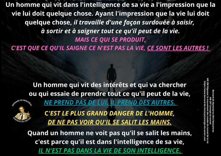 L'initié Bernard de Montréal met en avant l'importance de dépasser les limitations égotiques, les ambitions personnelles, la gestion des énergies avec intelligence, le maintien d'un équilibre entre les forces individuelles et collectives, pour atteindre une véritable transformation.